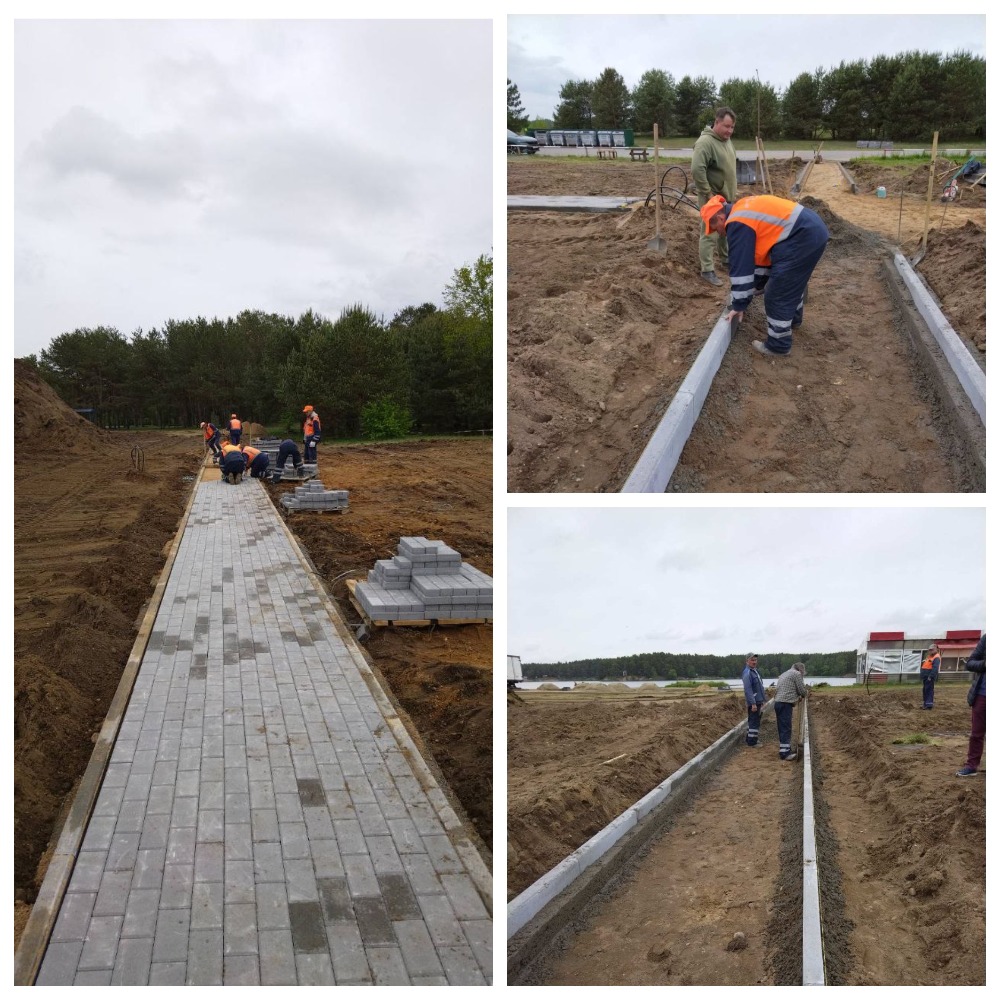 – Устройство борта и основания, а также непосредственная укладка плиточного покрытия тротуарных дорожек на оз.Юбилейном.